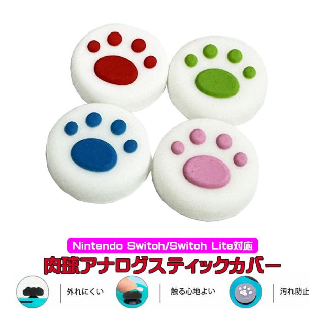 Nintendo Switch 有機ELモデル Switch Lite対応 アナログスティックカバー 肉球 白地 ピンク ブルー グリーン レッド 各色1個 4個入り 【送料無料】