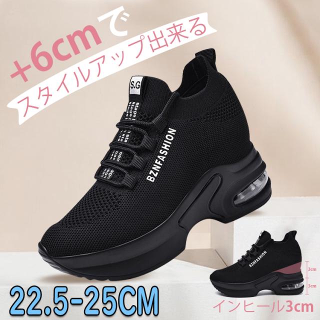 厚底スニーカー レディース インヒールスニーカー ハイカット 黒 シークレットシューズ 軽量 厚底6cm ヒールアップ 美脚 おしゃれ 疲れにくい レースアップ