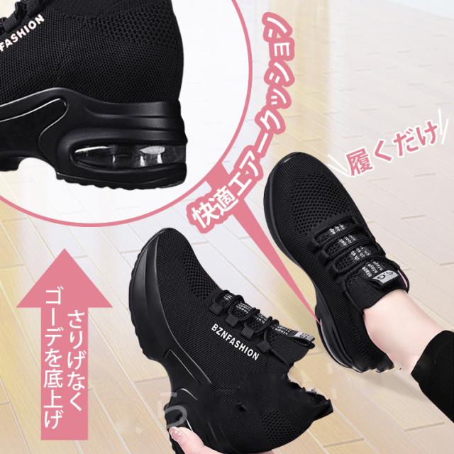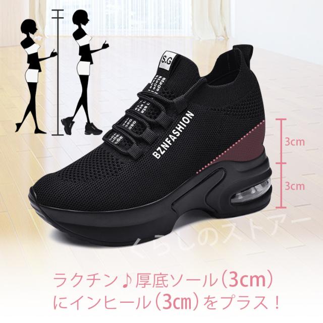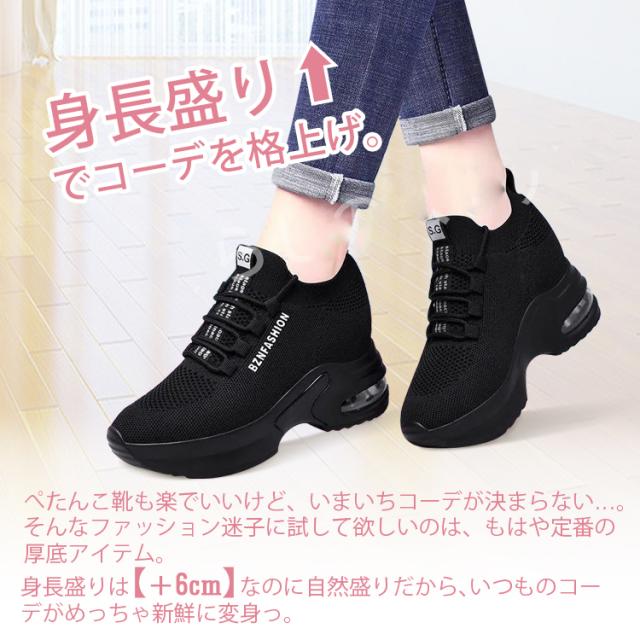 美脚効果抜群の厚底スニーカーが新登場!ハイカットデザインで足首もスッキリ見せ、6cmのインヒールが美脚効果を高めます。黒色なので合わせやすく、おしゃれなコーディネートにぴったり。さらに、軽量設計で歩きやすく、疲れにくいのも嬉しいポイントです。ウォーキングやショッピング、普段使いにもおすすめのシューズです。