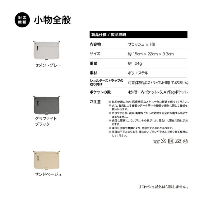 サコッシュ ストラップ 無し ショルダーストラップ 紐 取り付け 可能 ポーチ 収納 ポケット 付 小物入れ セカンドバッグ [ メンズ レディース 対応 ] MagEasy 2L SACOCHE
