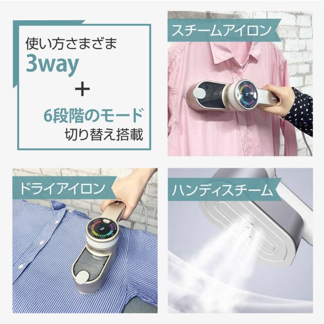 アイロン ハンディ スチームアイロン 衣類スチーマー ドライアイロン 3way 広いアイロン面 アイロンスチーム 強力スチーム 120ml大容量 軽量 恒温 ハンディアイロン シワ伸ばし 新生活 steam-iron-02