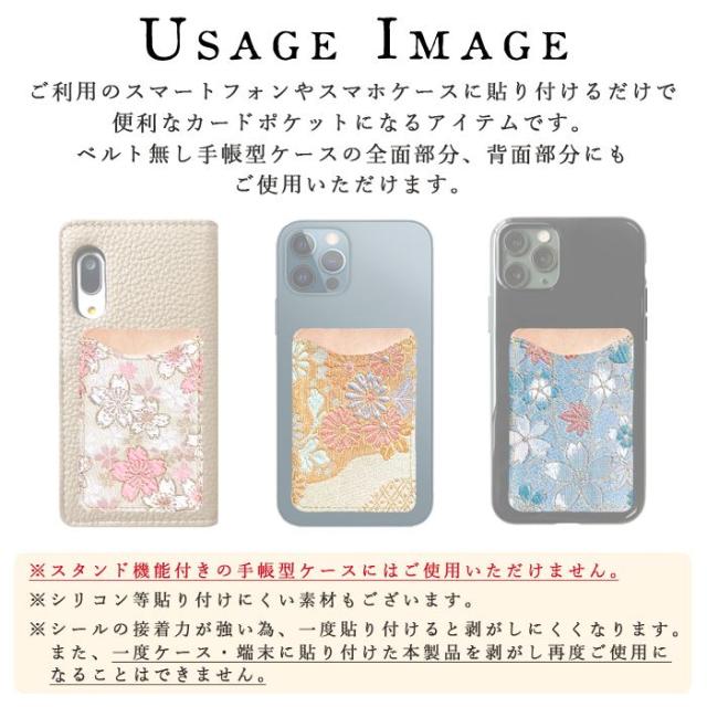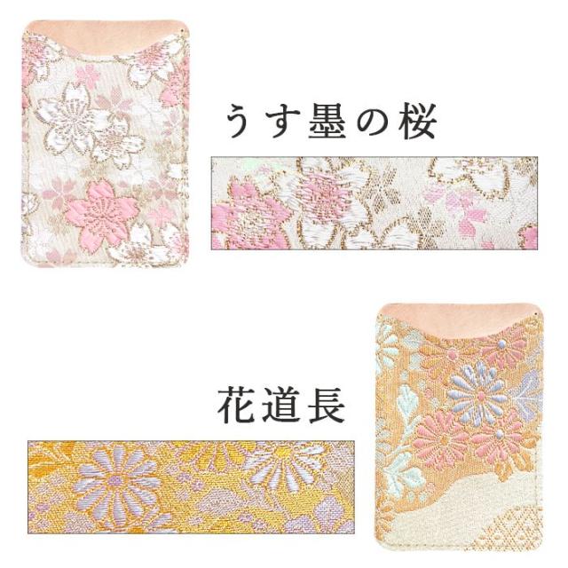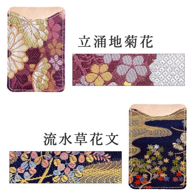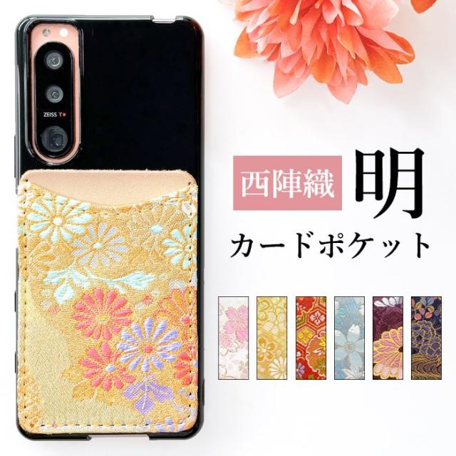 カードポケット カードケース スマホ カード収納 西陣織 明 貼り付け 背面 薄型 背面収納 レザー ポケット カード入れ スリム ICカード