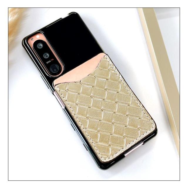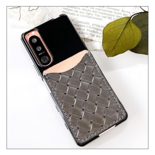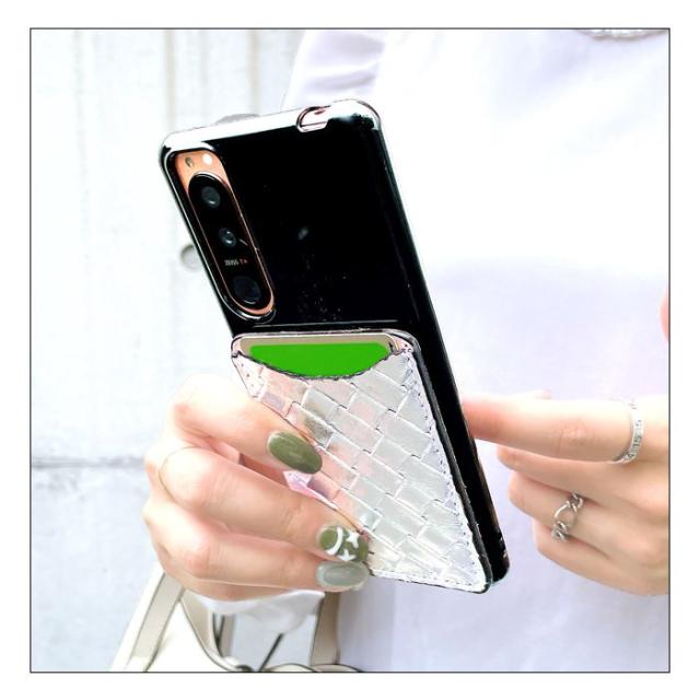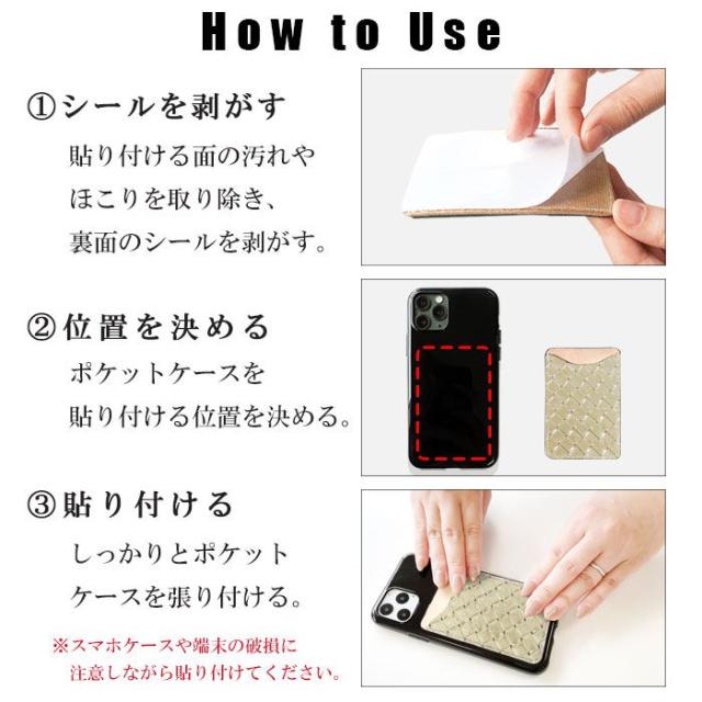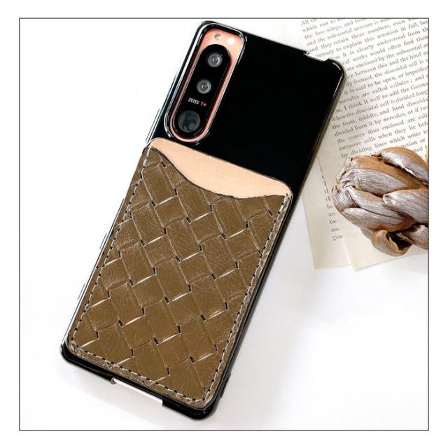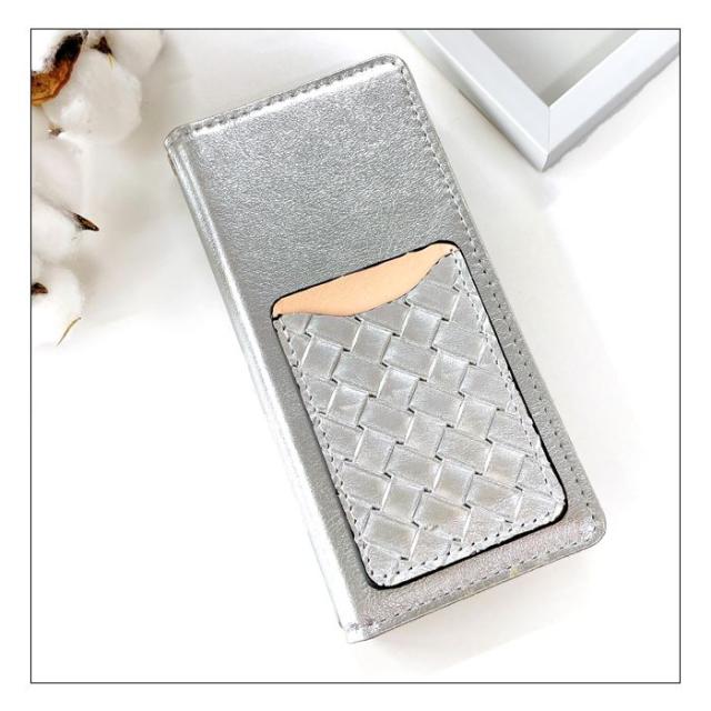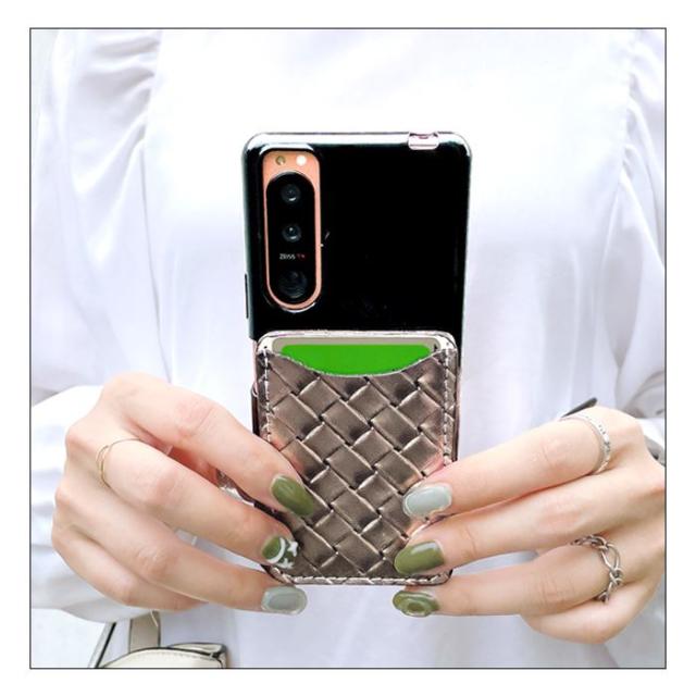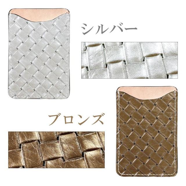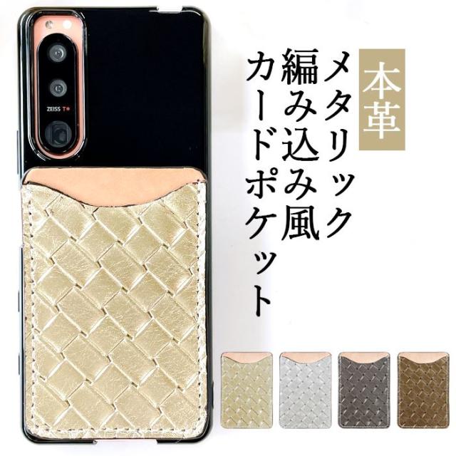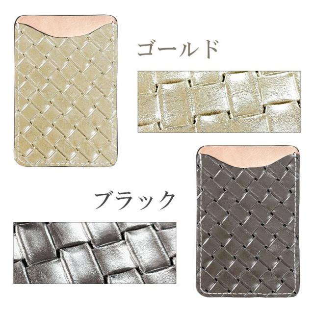 カードポケット カードケース 本革 メタリック 編み込み 型押し スマホ カード収納 貼り付け 背面 薄型 背面収納 レザー ポケット カード入れ スリム ICカード