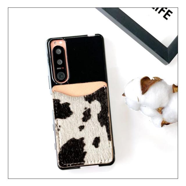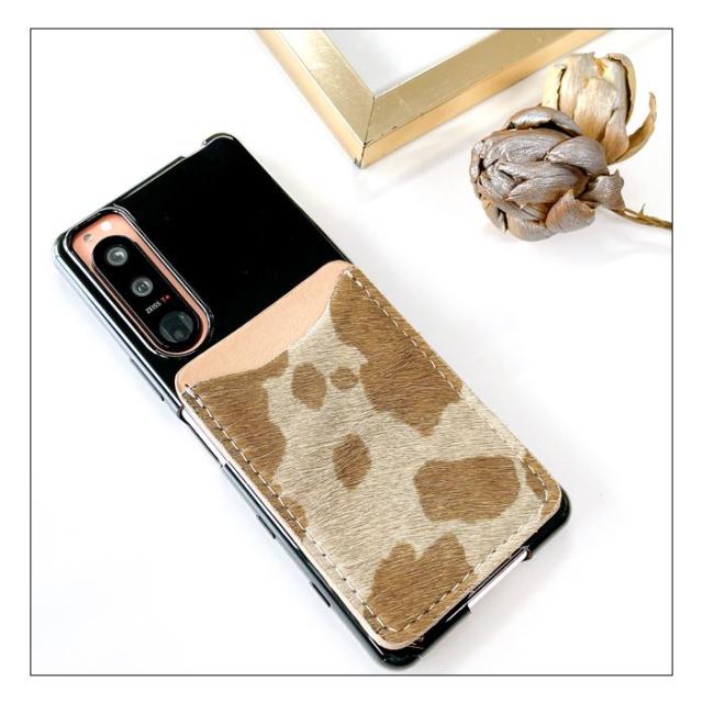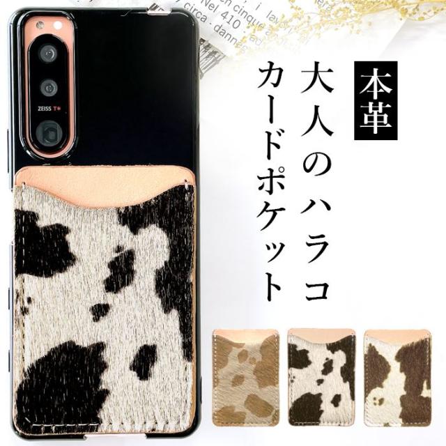 カードポケット カードケース スマホ カード収納 本革 大人の ハラコ 貼り付け 背面 薄型 背面収納 レザー ポケット カード入れ スリム ICカード