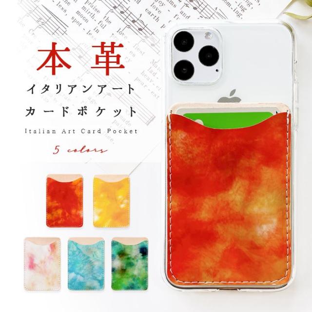 カードポケット スマホ カード収納 カードケース 本革 イタリアンアート 貼り付け 背面 薄型 背面収納 レザー ポケット カード入れ スリム ICカード