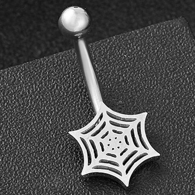 オールステンレス製の蜘蛛の巣をモチーフにした14ゲージのバナナバーベル型ボディピアス。