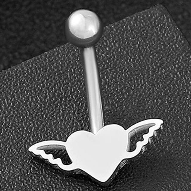オールステンレス製の翼の生えたハートの天使をモチーフにした14ゲージのバナナバーベル型ボディピアス。