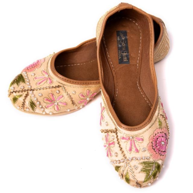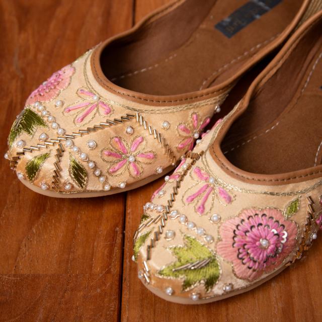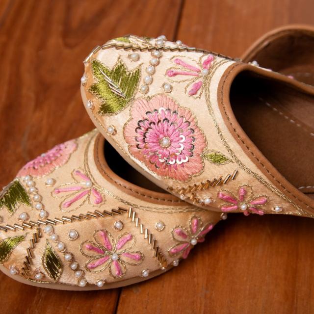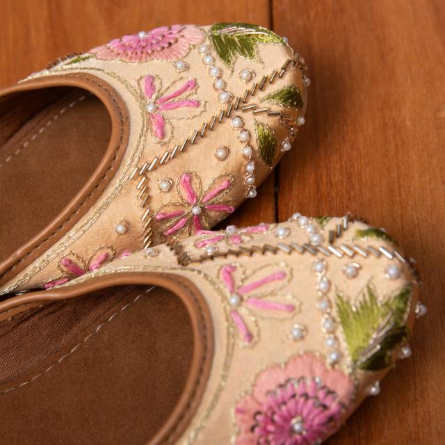 ゴージャス刺繍のマハラニフラットシューズ / フラットシューズ、パンプス、靴、ペッタンコ靴、インド 靴、サリー、クルティ、チュリダール、パンジャビドレス TIRAKITA(ティラキタ) エスニック衣料 【エスニック・アジアン衣料