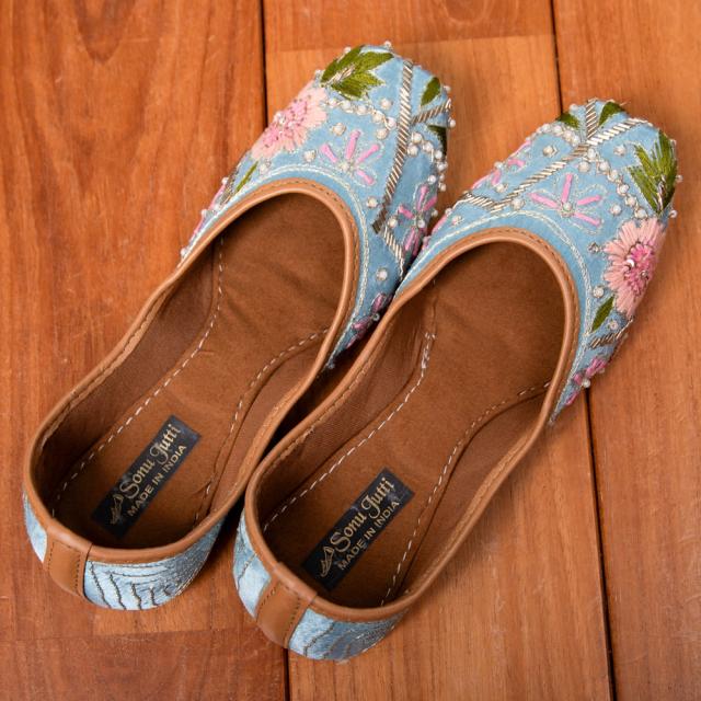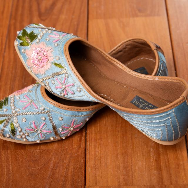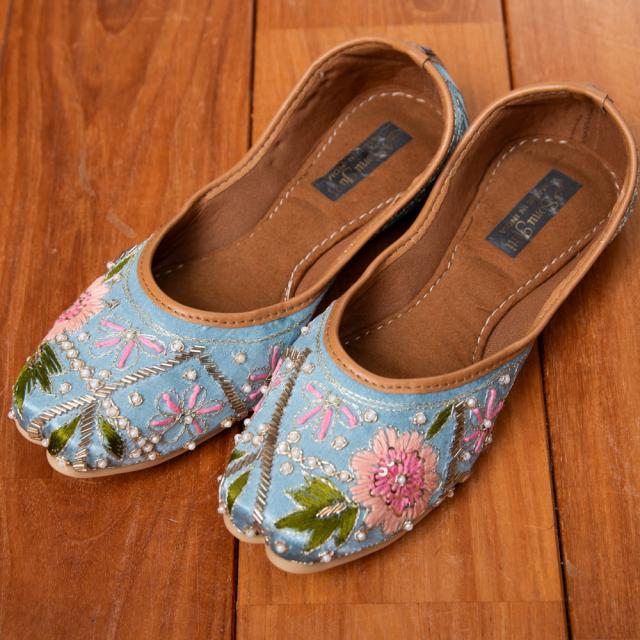 インドらしい装飾と色彩が素敵なフラットシューズです。