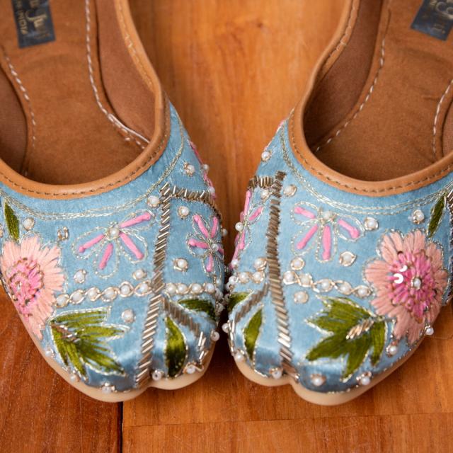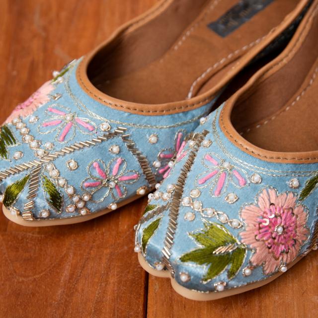 色とりどりのサリーが舞う国インドから華やかなフラットシューズがやって来ました。ビーズやスパンコールが輝かしい物から、美しい刺繍が施されているタイプまで。このシューズでパンジャビドレスやサリーを合わせたら、コーディネートは完璧だね!というインドスタイルです。どれも微妙にデザインが異なりますが、どれが良いか迷ってしまうくらいバランスの取れた配色にうっとりします。インドの女性って本当に華やかなデザインが好きなんだな?と改めて実感する一品です。エスニックファッションだけでなく、シンプルにデニムやTシャツなど、デイリー使いにもオススメです。