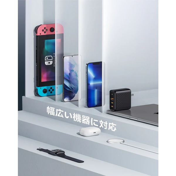 Android/Galaxy/iPhone充電器としても利用可能です。これ一台でノートPC、タブレット端末、スマホへ急速充電が可能です。