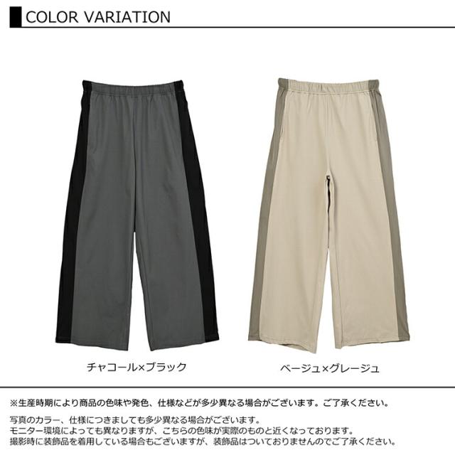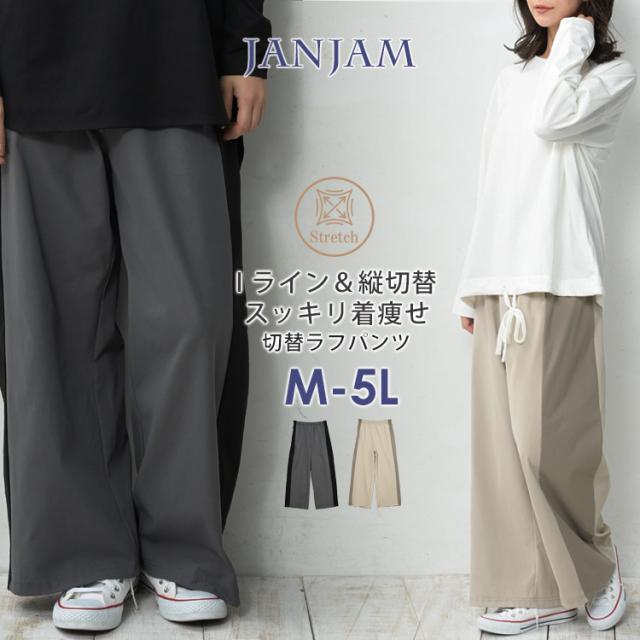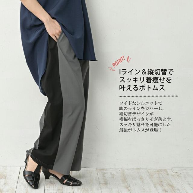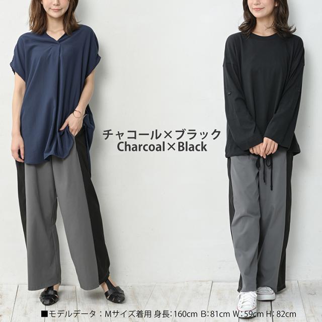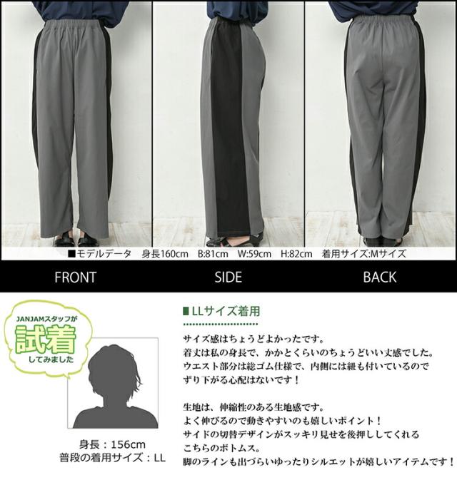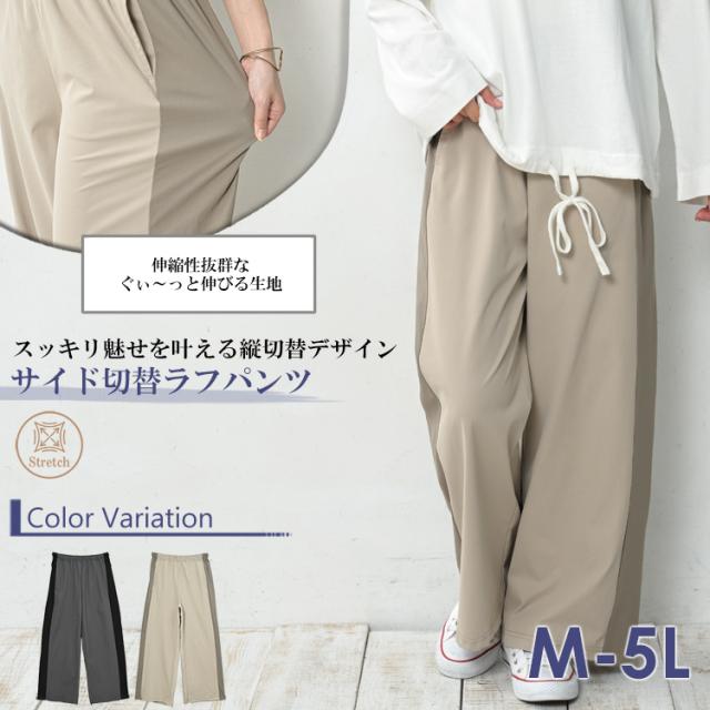 大きいサイズ レディース サイド切替ラフパンツ ロング丈 ウエストゴム ワイドパンツ ボトムス M/LL/3L/4L/5L ゆったりサイズ ぽっちゃり女子 プラスサイズ