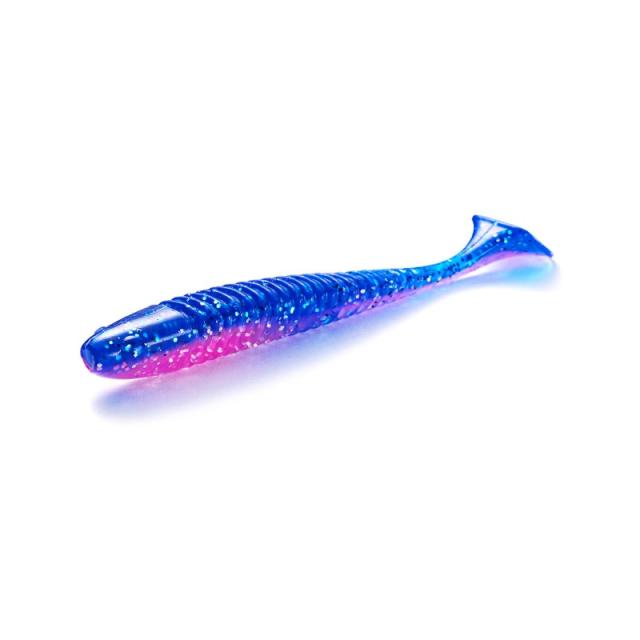 偏平ボディ&ハーフリブにより、バイトした瞬間、一方向にワームが折れ曲がります。