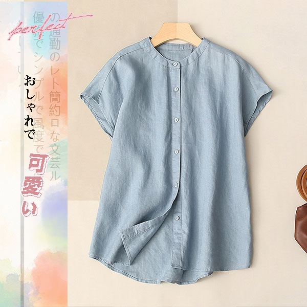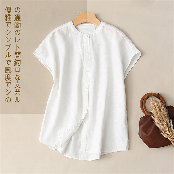 ■キーワード:ブラウス レディース シャツ オフィス 綿麻混 ワイシャツ スーツ 体型カバー 夏 コーデ 七分袖 白シャツ おしゃれ シンプル カジュアル ビジネス ふんわり コットンリネン オフィス 秋 春 夏 無地 通勤 OL きれいめ 上品 おしゃれ プルオーバー 上品 シンプル