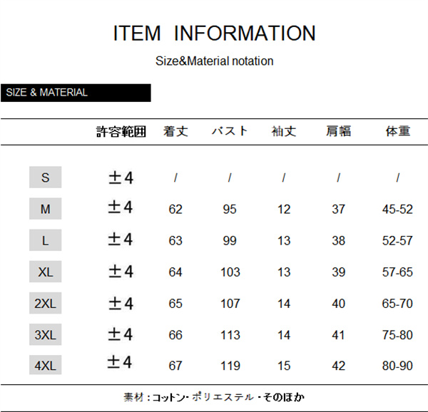 サイズ:/M/L/XL/2XL/3XL/4XL