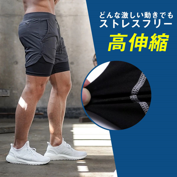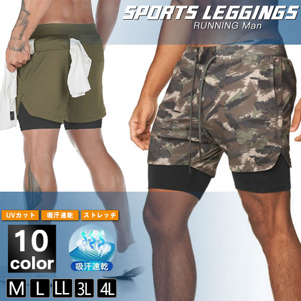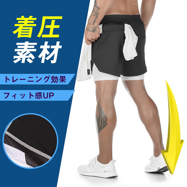ポイント超超祭 スポーツタイツ メンズ ショート パンツ 重ね着風 ジャージパンツ ショット丈 スパッツ レギンス コンプレッションタイツ 着圧 加圧