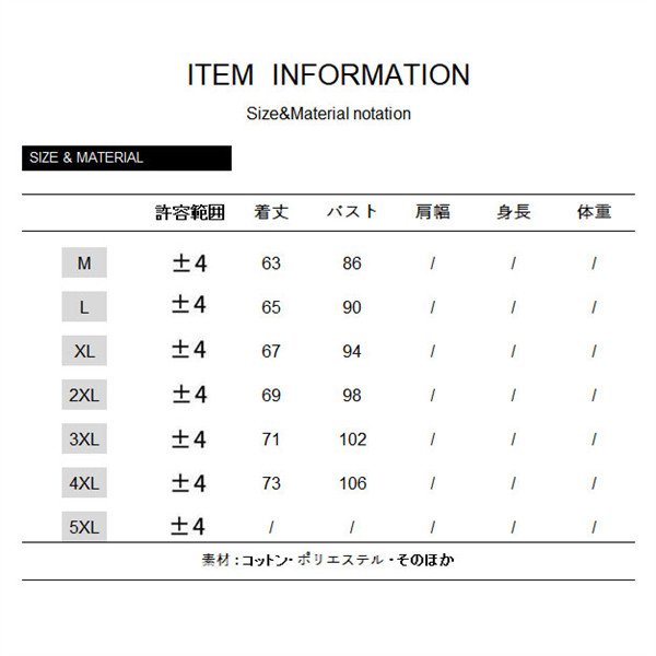 サイズ:/M/L/XL/2XL/3XL/4XL
