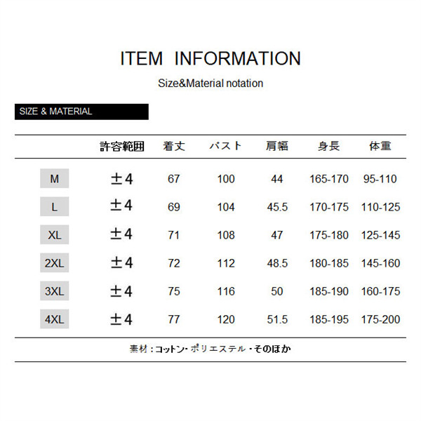 サイズ:/M/L/XL/2XL/3XL/4XL