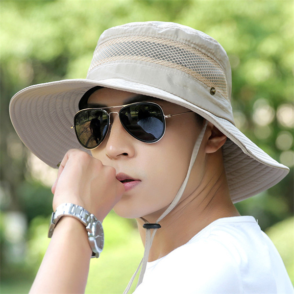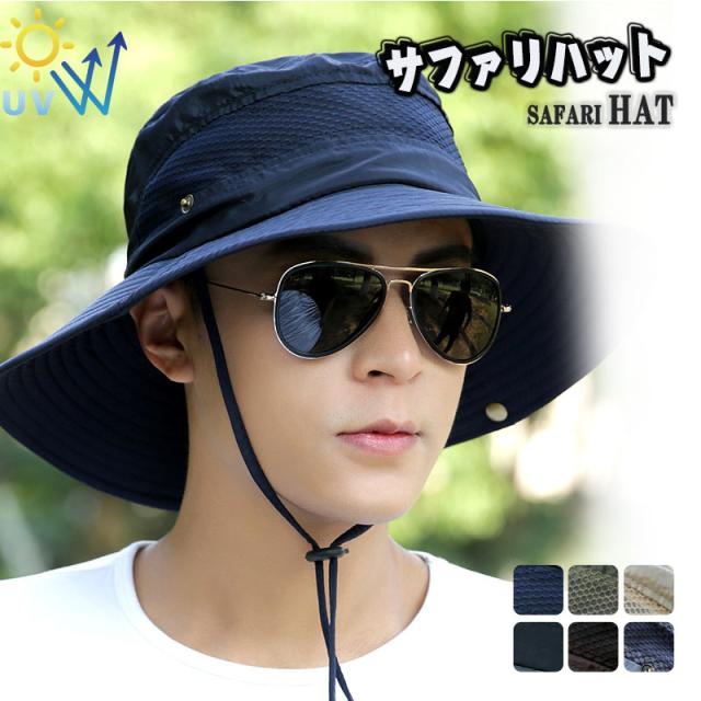 サファリハット メンズ バケットハット 夏 アウトドア 登山 釣り つば広 日焼け UV対策 メッシュ 通気性 あご紐付き 帽子 折りたたみ 父の日