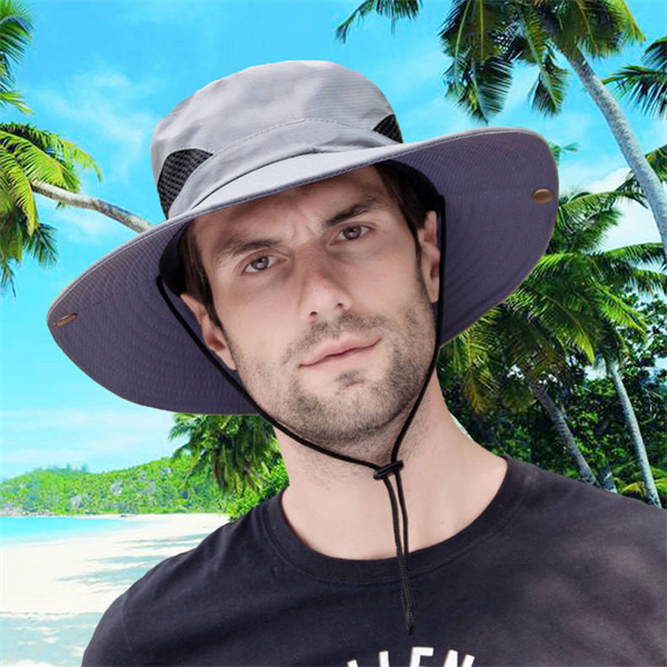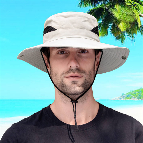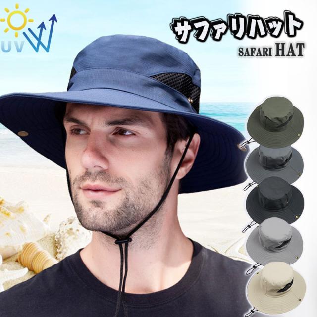 サファリハット アウトドア メンズ 帽子 メッシュ バケットハット つば広 折りたたみ あご紐付き 日よけ ハット ヒモ付き 軽量 通気性 父の日