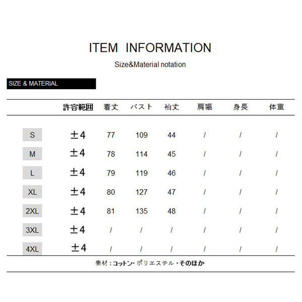 サイズ:/S/M/L/XL/2XL