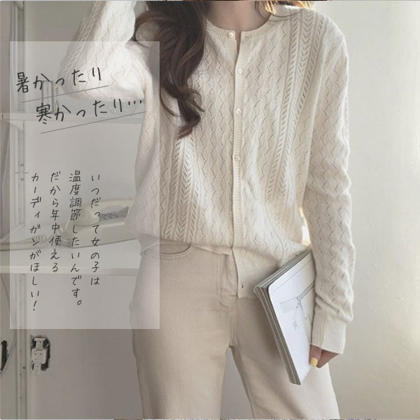 ポイント超超祭 春新作 新着 カーディガン レディース 編カーデ コットンニット トップス カーデ UV加工 ウォッシャブル 花粉対策 着痩せ 通勤 OL