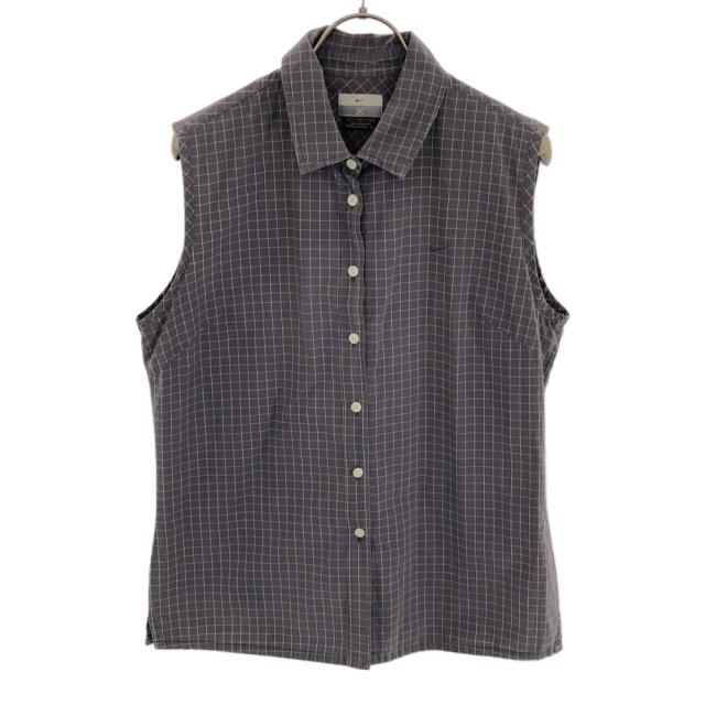 ナイキ チェック柄 ロゴ刺繍 ゴルフ ノースリーブ シャツ L グレー系 NIKE レディース
