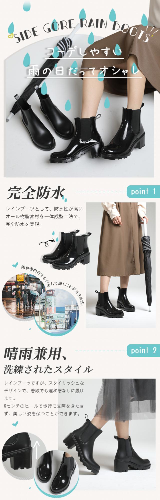 レインシューズ レインブーツ 晴雨兼用 完全防水 着脱簡単 雨 雪 台風 雨靴 エナメル マット調 おしゃれ 雨具 農作業 釣り 園芸 作業 ブラック 23.0cm-25.0cm