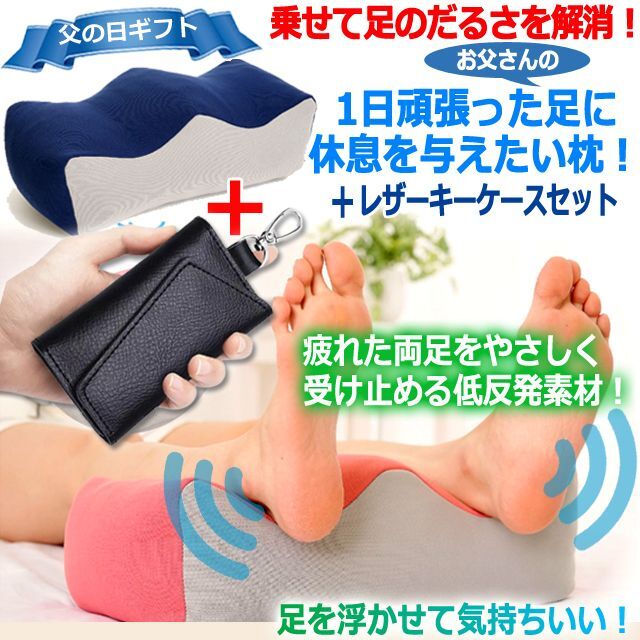 父の日ギフト 足枕 ひざ下枕 (低反発フィット 足らく枕 足を浮かせて気持ちいい & レザーキーケースセット ) ひざ下枕 腰クッション 足のだるさ 解消 立ち仕事