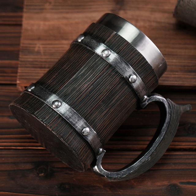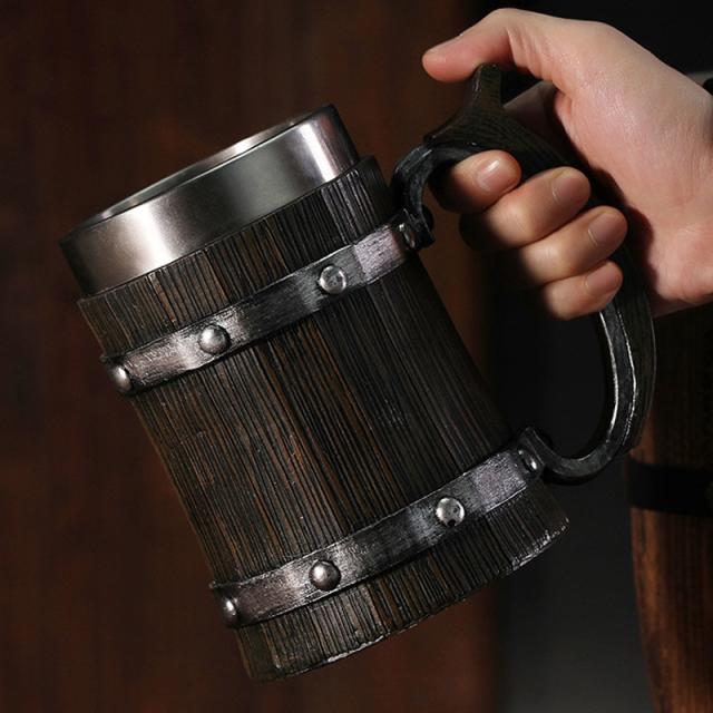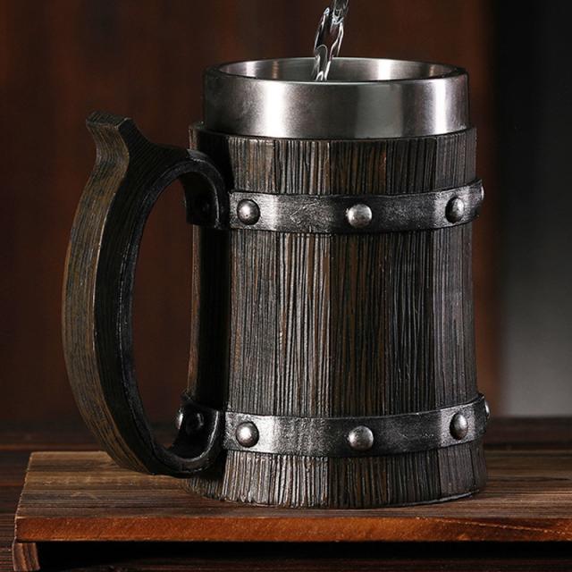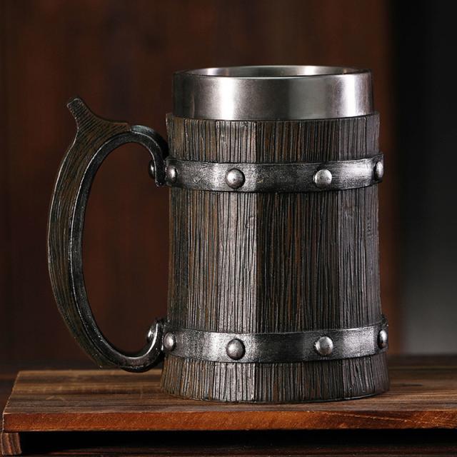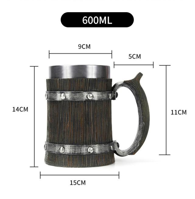 ビール ジョッキ グラス ステンレス 600mL ブラウン【海賊 海賊ジョッキ】バレルビールジョッキ マンガ コップ 夏 キャンプ 大容量