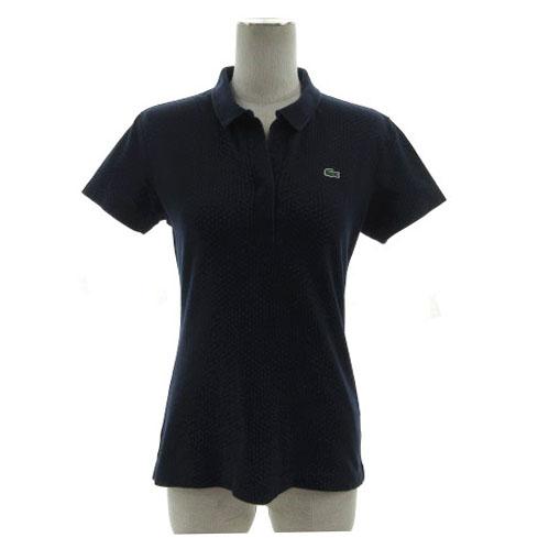 【中古】ラコステ LACOSTE ポロシャツ スキッパーカラー ロゴワッペン 半袖 コットン混 ドット ネイビー 紺 青 36