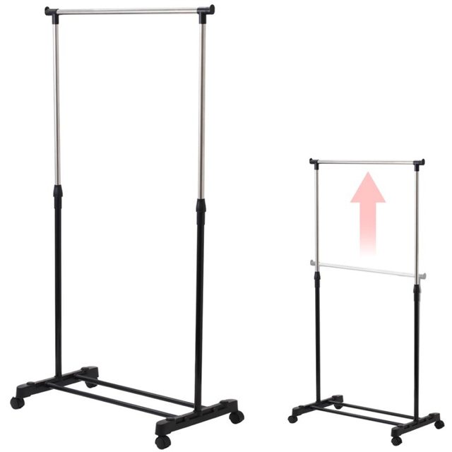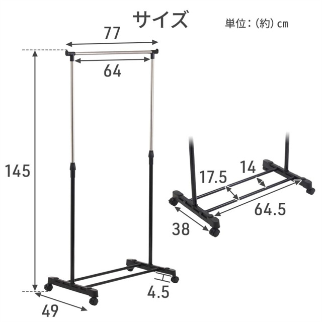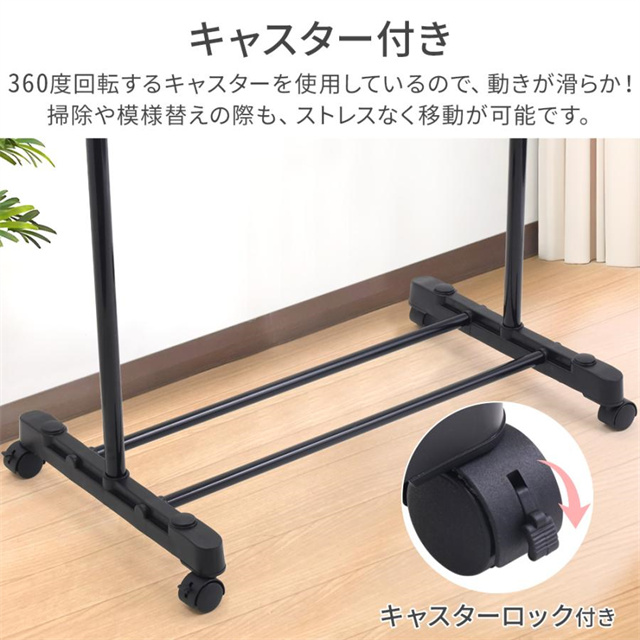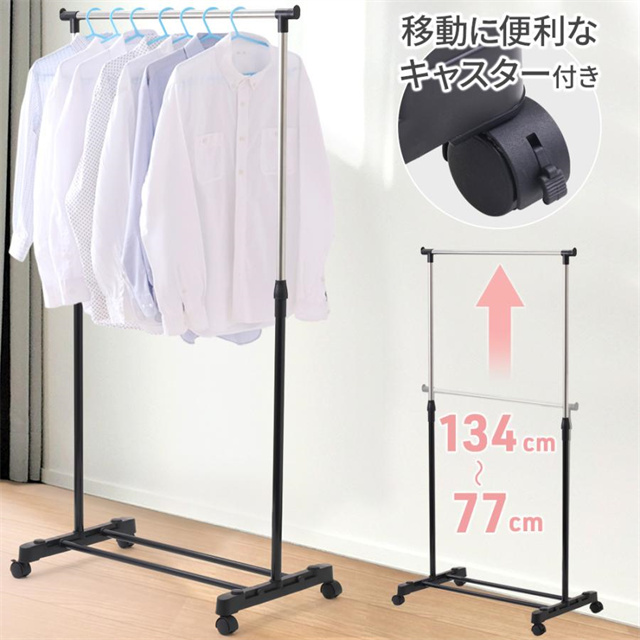 ハンガーラック パイプハンガー シングル スリム 洋服掛けラック伸縮 頑丈 服かけるラック キャスター付き 高さ調節 室内物干し 室内干し 洋服掛けラック伸縮