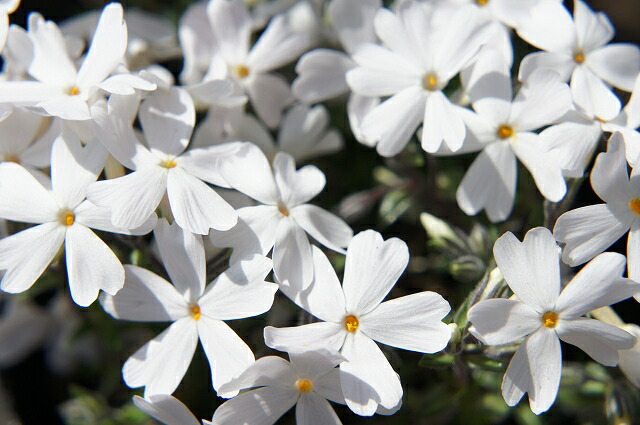 モンブランホワイトは清楚な雰囲気の白花です。芝桜のなかでも生育スピードは早いほうです。早く地面を覆いたい場合におすすめの品種です。全体的に、より明るく柔らかい感じになります。