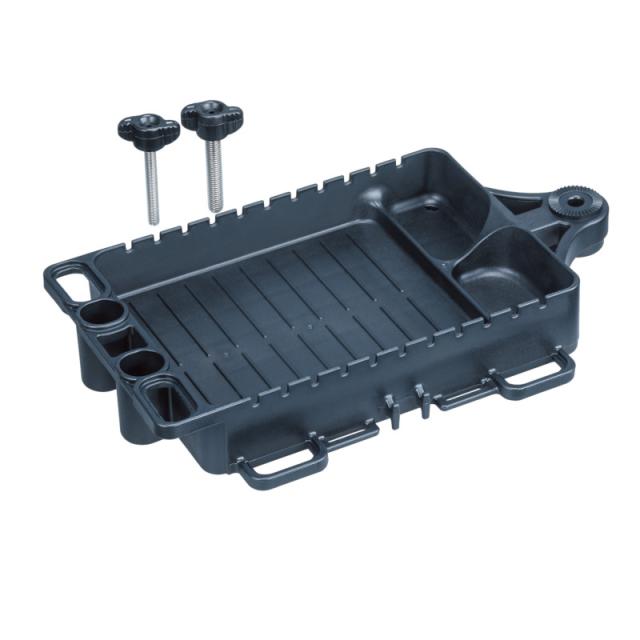 【第一精工/DAIICHISEIKO】マルチスタンド・受太郎シリーズ専用カスタムトレイ。フィッシュグリップやプライヤーなどのツールを多数装着可能!トレイ内にはローテーションルアーを置けるので手返しアップ!イカメタル・タイラバ・バチコンなどのルアーローテーションの多い釣りに最適です。