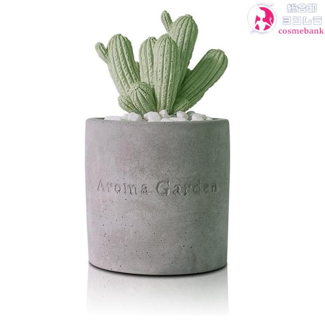 無機質なセメントのカップに入った、まるで本物のようなかわいい2種類のサボテンからは、それぞれ華やかないい香りが。