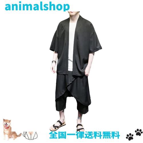 [inotenka] 甚平 メンズ 作務衣 羽織 セットアップ 上下セット 和風 カジュアル ロング カーディガン 7分袖 ゆったり おしゃれ