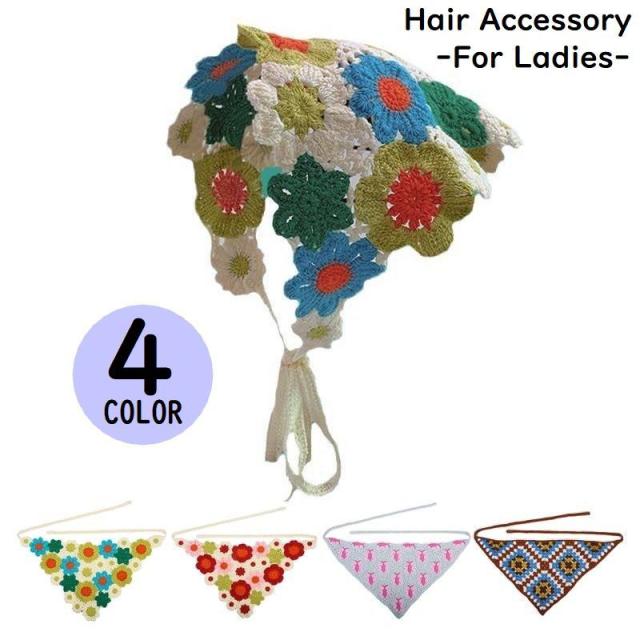 三角巾 レディース かぎ針編み風レース ヘアアクセサリー 髪飾り 頭巾 スカーフ バンダナ ヘアアレンジ 花柄 おしゃれ 可愛い