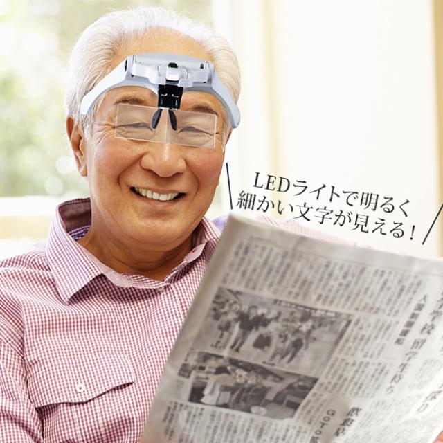 LEDヘッドルーペ(LEDライト付き ルーペ 拡大鏡 ヘッドルーペ 5種類 倍率 レンズ 1.0倍 1.5倍 2.0倍 2.5倍 3.0倍 小さい文字 読書 新聞 裁縫 LED ライト 付き 拡大 鏡) 1-2W