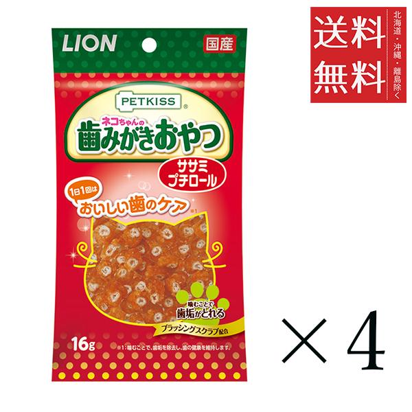クーポン配布中!! クーポン配布中!! メール便/送料無料 ライオンペット PETKISS ネコちゃんの歯みがきおやつ ササミプチロール 16g×4個セット まとめ買い オーラルケア デンタルケア