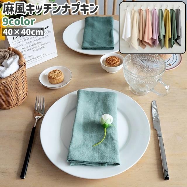 キッチンナプキン テーブルナプキン 40cm ループ付き 正方形 四角形 無地 白 ベージュ ピンク 黄色 単色 麻風 シンプル