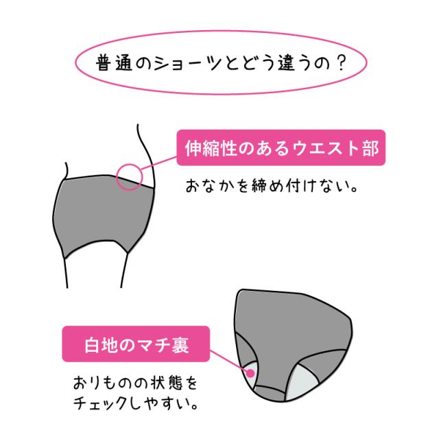 | 特徴 | 犬印本舗 産前・産後 マタニティショーツ どうしてマタニティショーツが必要なのでしょう? 妊娠しておなかが大きくなってくると、子宮が血管を圧迫し、 血液の循環が悪くなるため下半身は冷えやすくなります。 おなかを締めつけにくいマタニティショーツで赤ちゃんを やさしく保護してあげましょう。 また妊娠中は、ホルモンの影響で肌が敏感になり、 汗もかきやすくなるので、吸水性が良くはき心地の良い素材を選びましょう。 〇伸縮性のあるウエスト部 おなかを締めつけない 〇白地のマチ裏 おりものの状態をチェックしやすい。 |