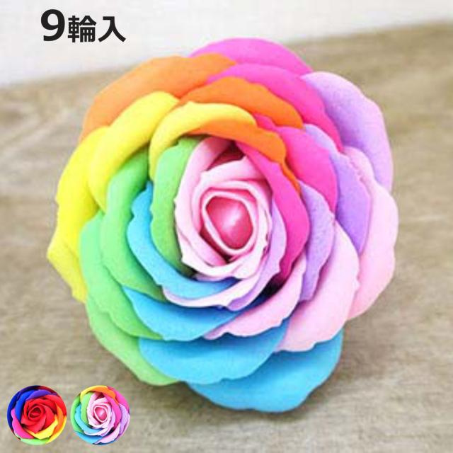 芳香剤 レインボーフレグランス 造花 9輪入り ( 薔薇 バラ お花 花 フレグランス ルームフレグランス 香り 香り付き フラワー カラフル レインボー 母の日 ローズ 女性 石鹸の香り せっけんの香り 飾り インテリア 置き物 オブジェ )