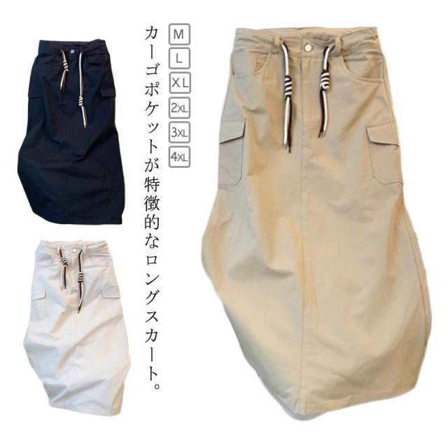 カーゴスカート 大きいサイズ ロングスカート ミリタリー レディース マキシスカート メンズ 体型カバー カーゴ スカート スリット入り ボトムス コットン スカート 半袖シャツ 春 夏 薄手 ブラック ベージュ