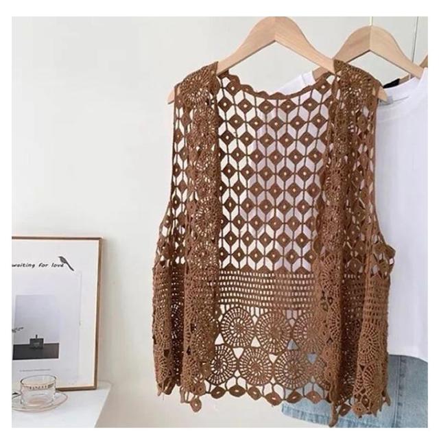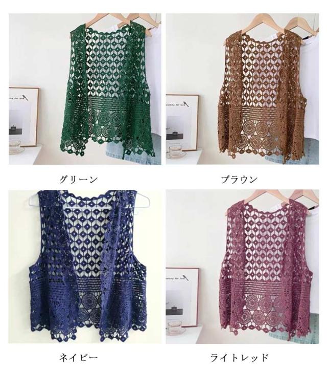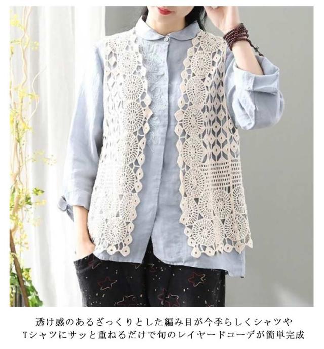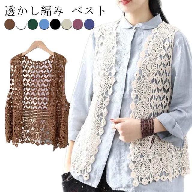 ベスト メッシュ 透け 夏 ベスト 花柄 透かし編み レディース トップス トップス 前開き Vネック カジュアル 春 レイヤード ニットベスト きれいめ 薄手 ベスト カーディガン 無地 重ね着 カジュアル ノースリーブ アウターウエア 羽織 レイヤード