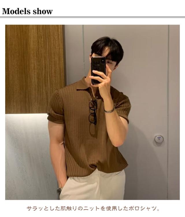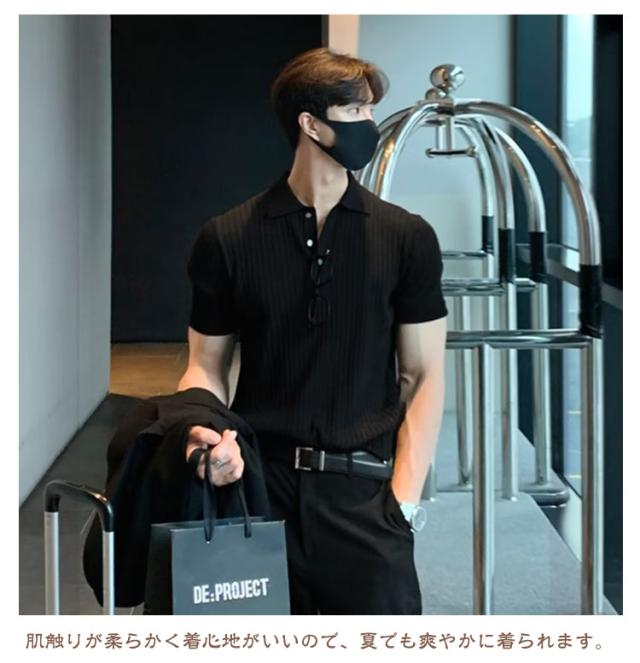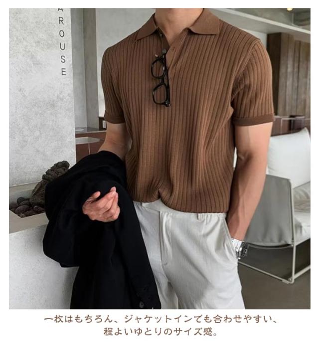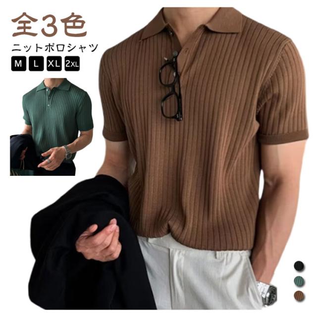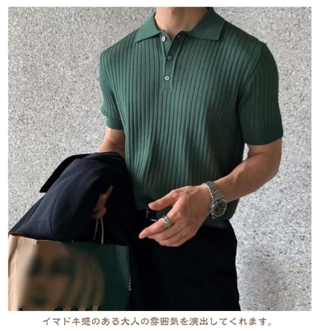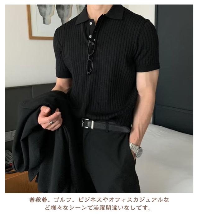 トップス メンズ サマーニット ニットポロ ファッション ポロ 韓国 半袖 サマーセーター ニットポロ 夏 リブ 半袖ニット セーター 無地 ニット ニットポロシャツ キレイめ Tシャツ 黒 カジュアル ビジネス ゴルフ 夏服