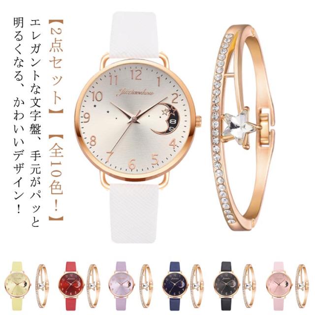 高見え PU革ベルト ビジネス 高級感 見やすい 可愛い ウォッチ ブレスレット付き 彼女 仕事用 レディース 2点セット 腕時計 かわいい おしゃれ 女性用 カジュアル プレゼント クリスマス 母の日 リストウォッチ ワーク 妻 誕生日