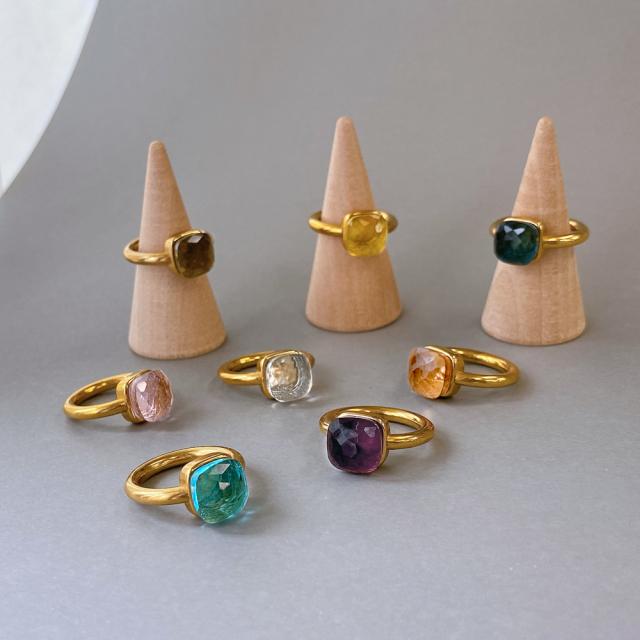 大粒ビジューがアクセトのステンレス製カラーストーンリング。
