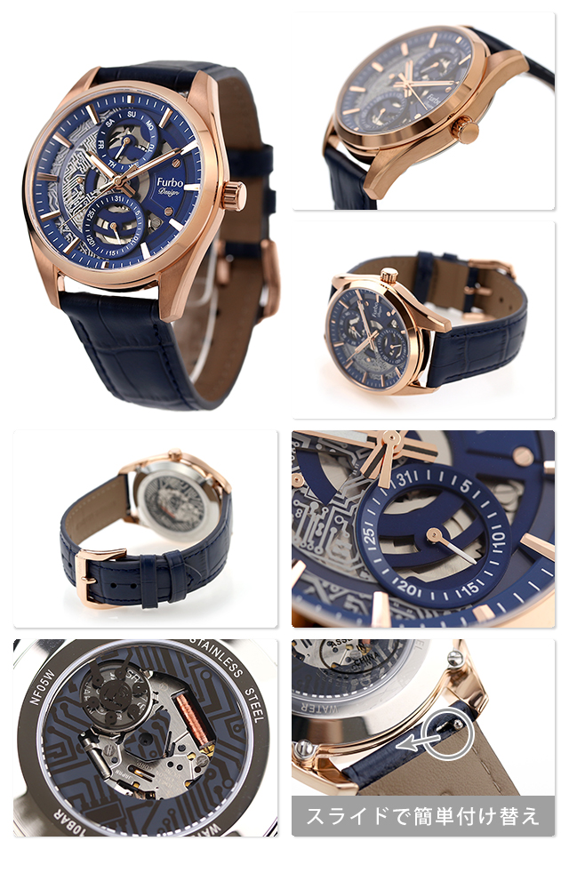 フルボ デザイン ELECTRO クオーツ 腕時計 ブランド メンズ オープンハート Furbo Design NF05W-PGNV アナログ ネイビー スケルトン ネイビー