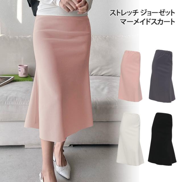 新作 カットオフストレッチジョーゼットマーメイドスカート レディース ボトムス 厚手 ロングスカート タイトスカート ウエストゴム ミモレ丈 膝下 伸縮性 無地 シンプル きれいめ フェミニン 上品 オフィス OL