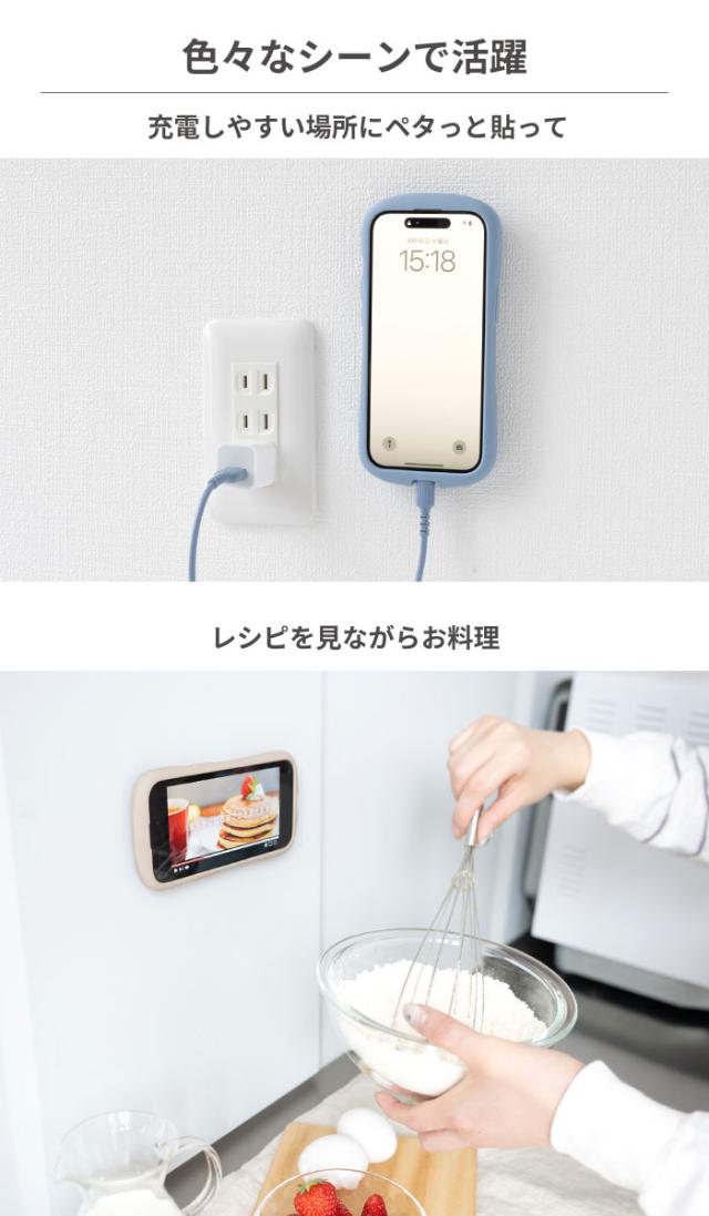 壁やデスクなどにペタッと貼れるスマホホルダー。